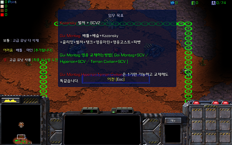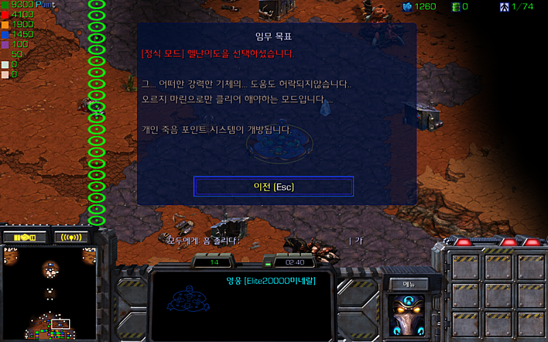 첫시작 화면입니다 정식[헬]모드는 마린,파벳,고스트만 쓸수있으며 개인죽음포인트 라는 순위표가 개방됩니다