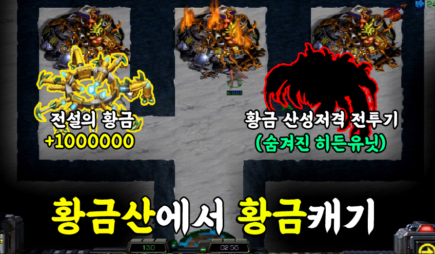 황금산에서 황금을캐서 최종보스를 잡으면 게임승리하는 킬링타임 유즈맵