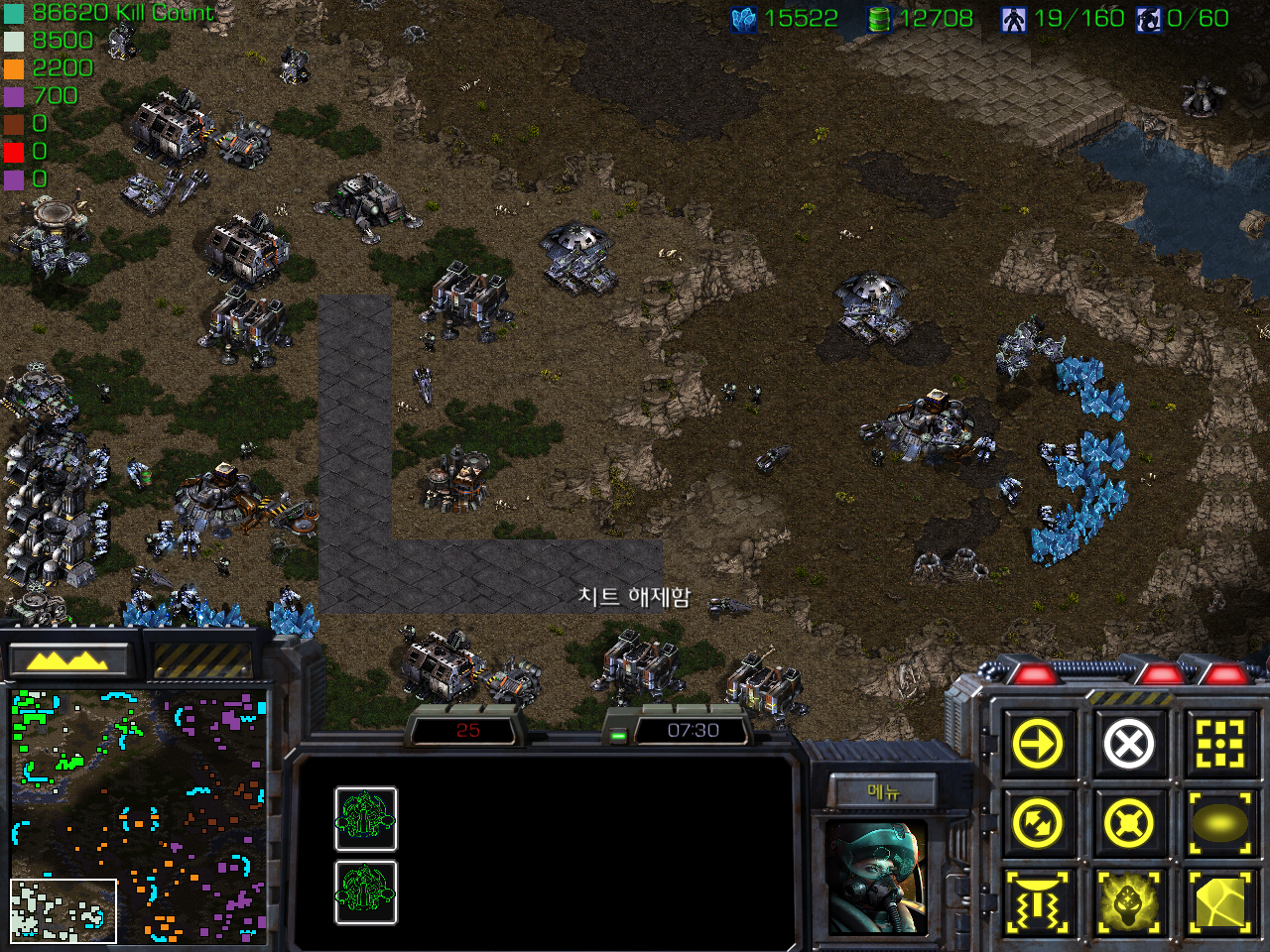 팩토리 기준으로 좌측 상단부터 팩토리 생산 유닛인 시즈탱크, 골리앗, 벌처, 투견이 있습니다.